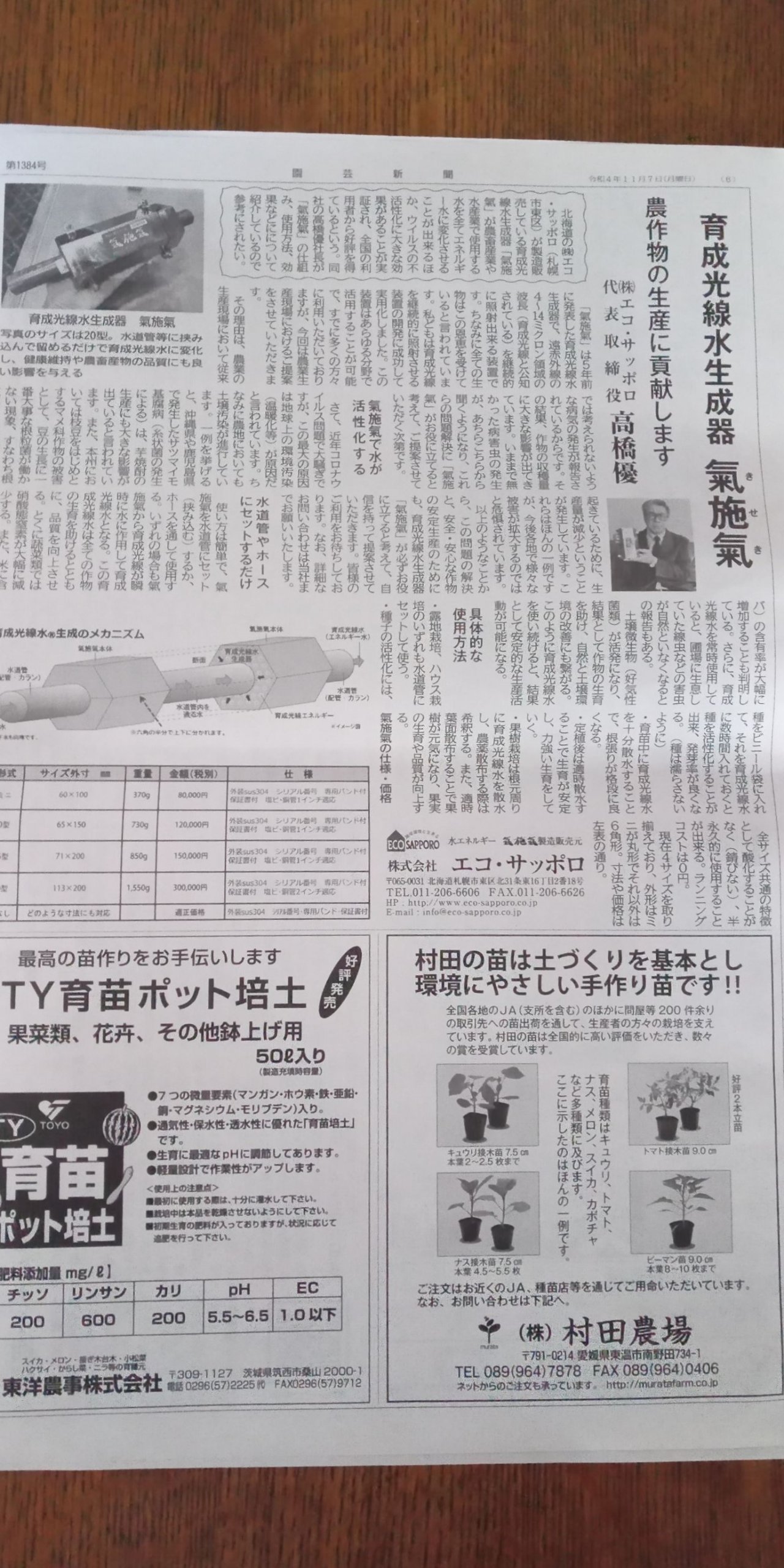 育成光線水生成器・氣施氣 について複数の媒体によるご案内、同時にご理解とご協力を得て『育成光線農法』を揺るぎないものに確立させる。