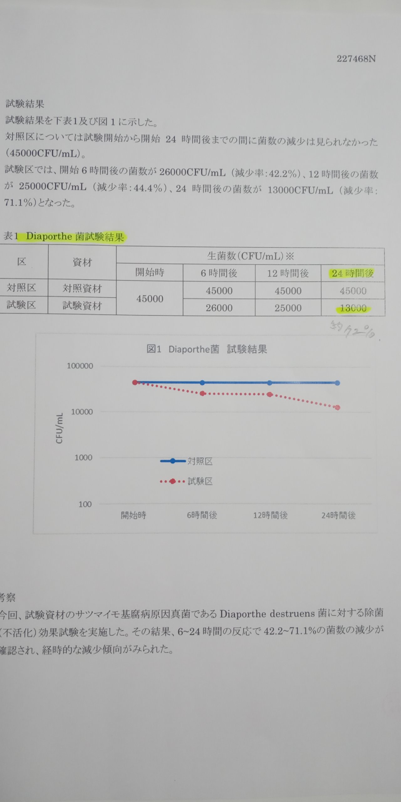 試験は24時間での結果ですが、更なる時間経過で更なる効果アップと考察出来ます。